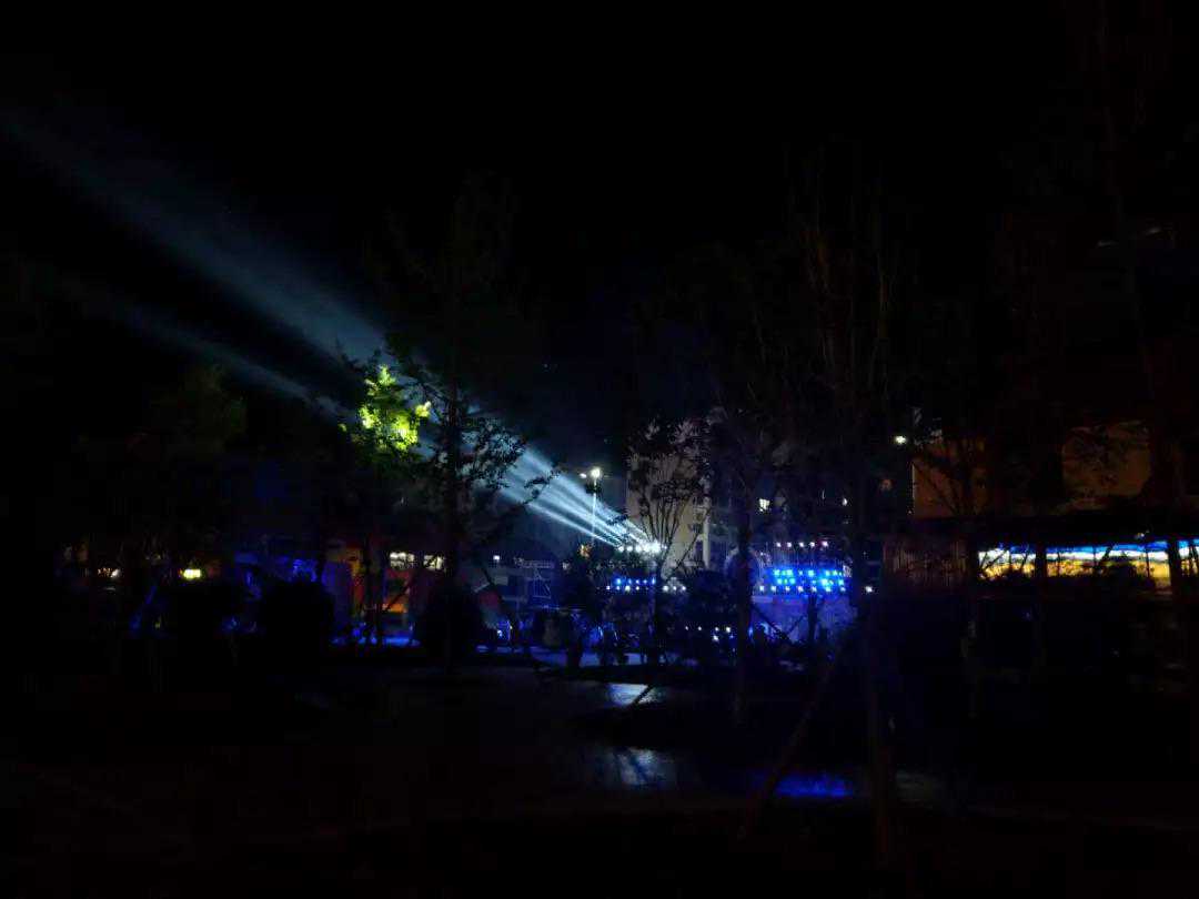 夜色中,舞台、道具、灯光静静等待着