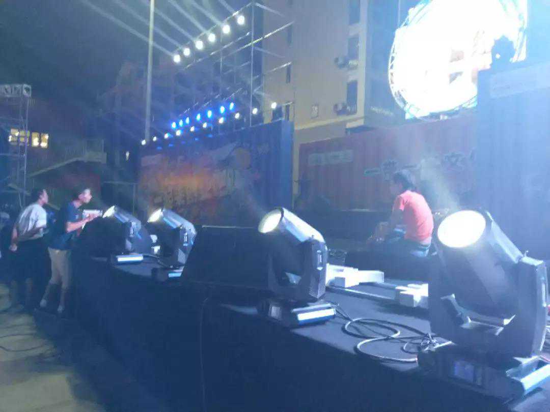工作人员提前到达潮港进行舞台布置