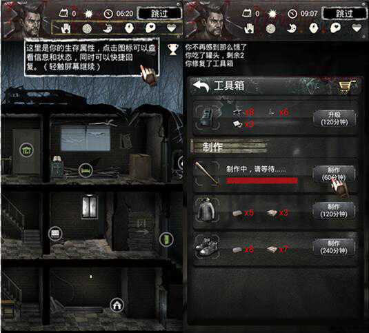 本作的设定中有着外伤、感染、精力、心情以及生命六个数值的设定,而如果你的生命值降到0则宣布本次游戏的失败。但是除了生命值以外,其他的五个数值也对你的身体有着重要的作用,比如外伤和心情影响着你的生命回复效果,而精力将影响着你的战斗能力,如果你无法在游戏中控制好你的各项数值,那么你肯定在游戏中走不了多远了。而游戏中饥饿值和精力实在是掉的太快了,基本上在游戏的中期,你出门随便坐点什么就要走十多个小时,就是说你什么都没有做,饥饿值和精力值就掉了大半,而游戏中食材的获取量很少,基本要靠游戏中的种植系统来获取食材,而种植系统每次的产出时间长,出产量少。两点一结合就可以强烈的感受到制作组在你耳边呼唤着三个字“氪金吧!氪金吧!”