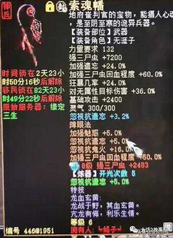 作为大话2战术核心男人的神器怎么能缺席呢?底子是忽视抗混7.2的极品。没想到居然炼化出忽视抗混10的神级炼化,还有发光特技。要是炼器再来个忽视抗混3以上,妥妥的仙器价格。玩家这把炼化操作演绎了什么叫单车变摩托。