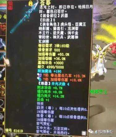 男鬼极品的6级双回神兵。底子是强三尸虫7200,加强遗忘24,加强三尸虫回血程度60,蓝字炼化出忽视抗遗忘3.2,打了一颗八级宝石加了强三尸虫2483,炼器还是忽视抗遗忘5。非常强悍且全面的男鬼神兵。大家觉得这把武器能卖出多高的价格呢?