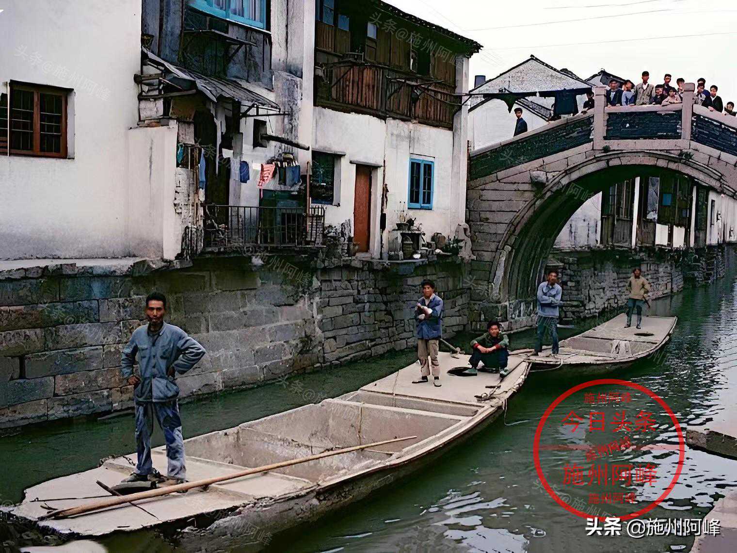 80年代在苏州拍摄的照片,苏州被称为东方的威尼斯,城内河流纵横,人们可以驾驶小船在城市中穿梭。