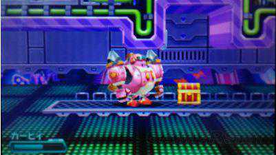6.进入场景后会看见螺丝孔,过去按上然后摇摇杆可以把螺丝卸掉下去,之后会有平台同样操作可以获得一条命,第二个平台连续摇摇杆直到阶梯平台朝右方,然后上阶梯下来后脱下机器人进管道获得剑士能力,把绳子砍断打破炸dan开启道路,再坐机器人进入门到下个场景。