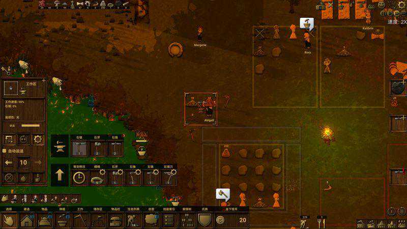 简单来说,每个生产单元都有一套通用的操作逻辑。为他们设定产品的种类、数量和优先级,使资源和产品能够保证合理的产出和存储。这种安排是否得当,直接影响到在“桌面”上的观感,所以你可以看到,一个优秀的部落一定是井然有序,各个区域堆放整齐的材料,工具不随意丢弃;反之会很乱,工人满屏跑(坦白说我是这方面的反面例子)。