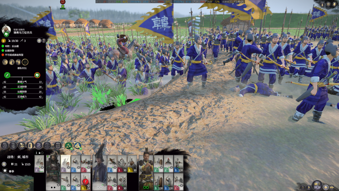 游戏模式下,以1080P分辨率,纹理质量、阴影细节、抗锯齿、视觉特效细节等画面质量拉到最高运行全面战争三国游戏,显卡占有率达到99%,帧率维持在30帧左右,可超频至1785MHz,显存占用率95%,性能发挥到极限水准。
