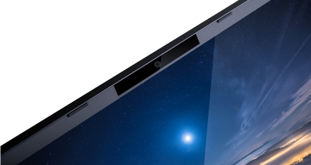 B面是一块15.6英寸IPS高清显示屏,左右边框采用超窄边框设计,由于摄像头被放置在机身上面,所以上边框稍微比左右宽些,即使这样,整体屏占比也达到了84%。有一个小细节,火影T5V的上下左右边框分别放置了两个凸起的塑料模块,一共八个,其作用是为了保护屏幕,可以说是非常用心了。