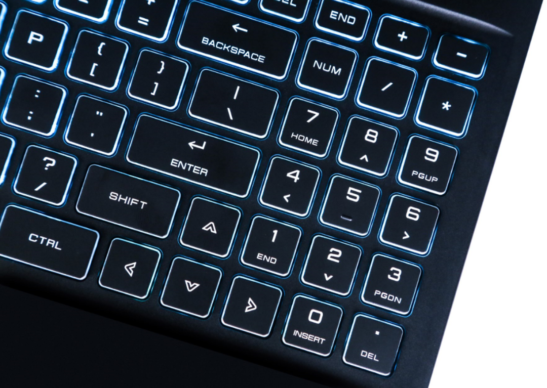C面标配了传统的全尺寸键盘,辅以单区多彩背光,支持小键盘输入和背光亮度调节,打开火影自带的控制中心软件,可以调节背光颜色,有单彩、多彩以及自定义三种模式供你选择。右上角是一键强冷按键和电源键,双击触摸板左上角指示灯可以关闭/打开触摸板功能,这种比快捷键更方便,非常易操作。
