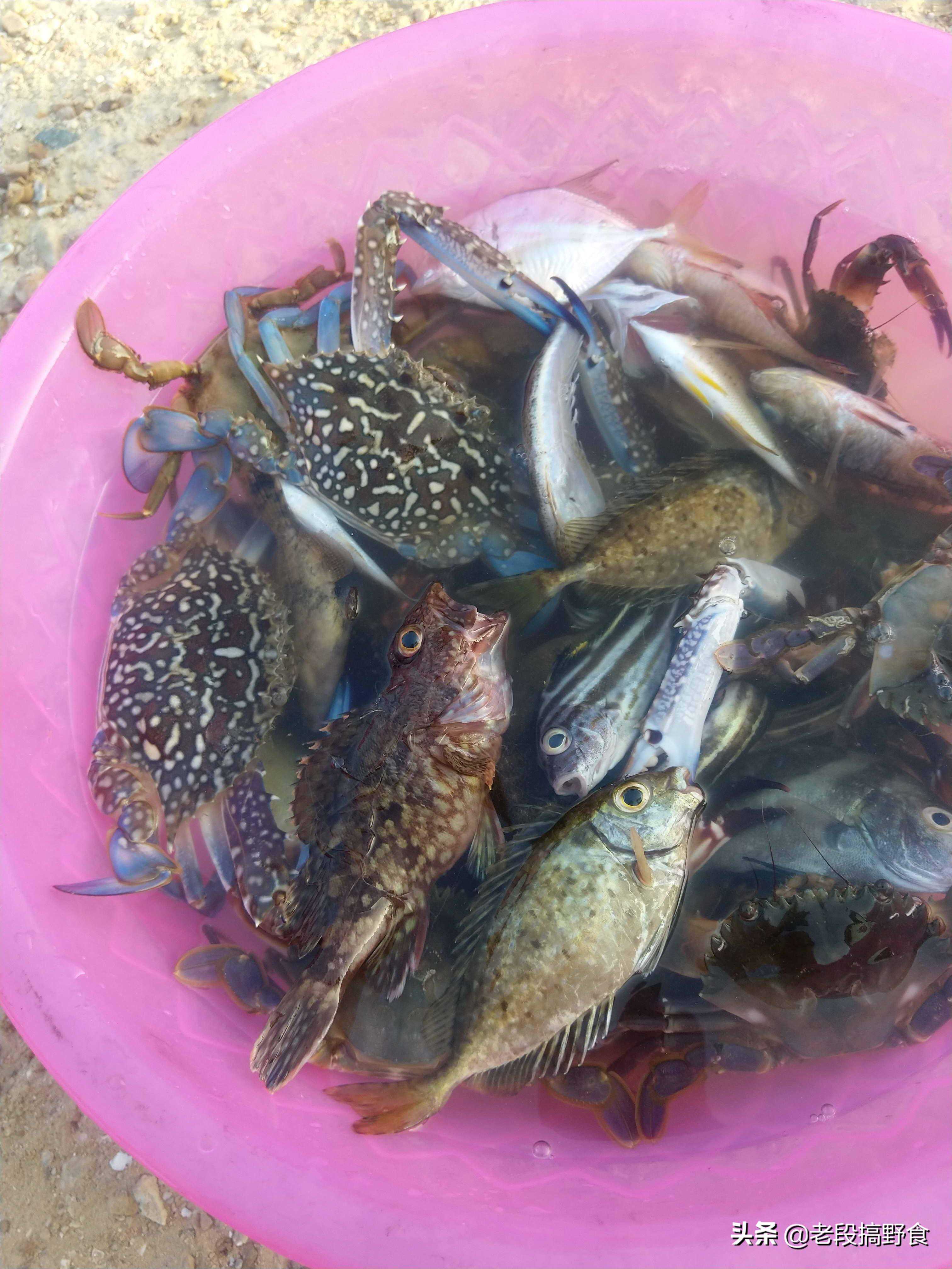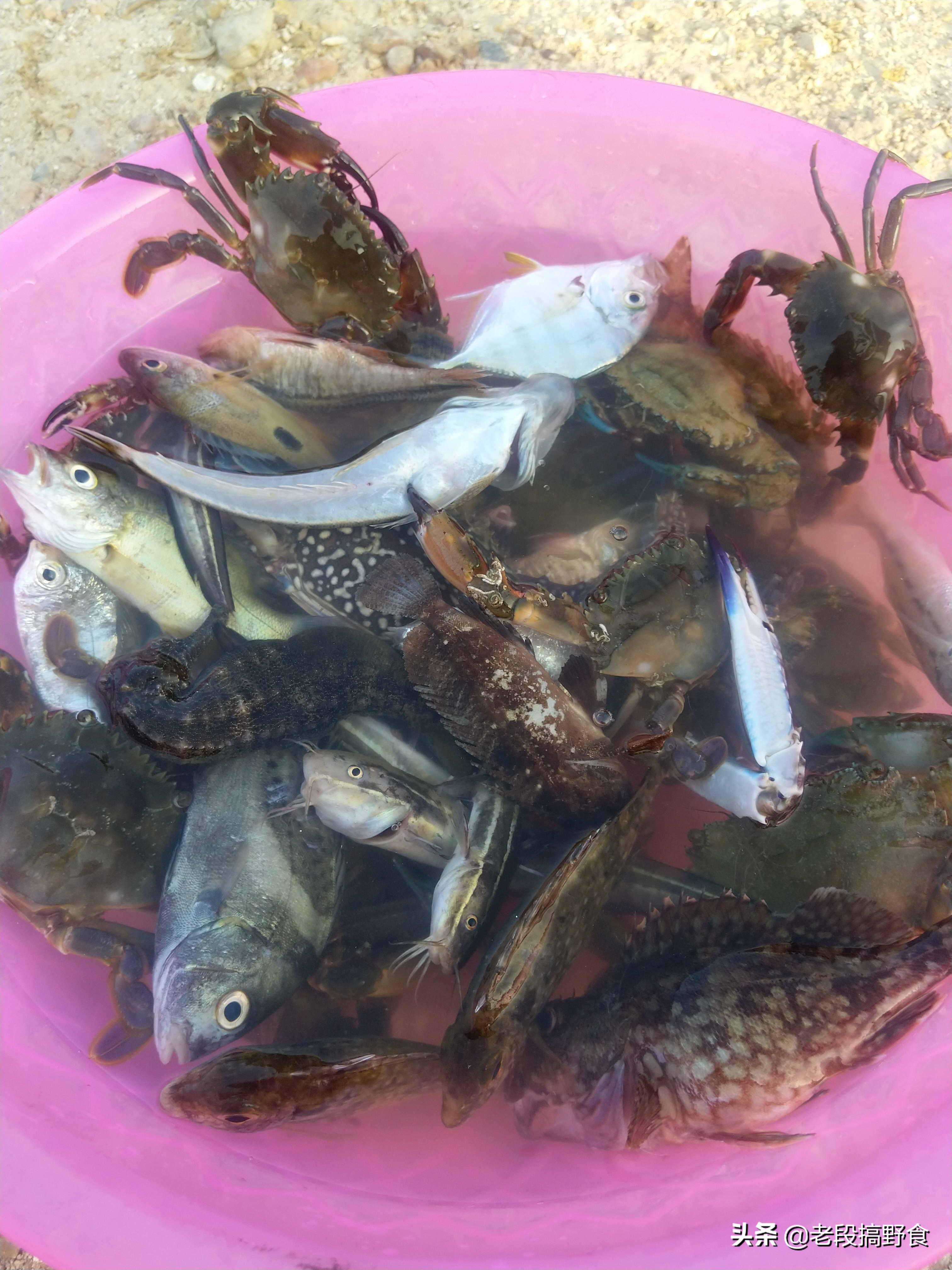 接下来上干货,赶海下网捕鱼相片,下面的图片是不同时间段去大网前搞野的海获,简直是满满的收货,哈哈!