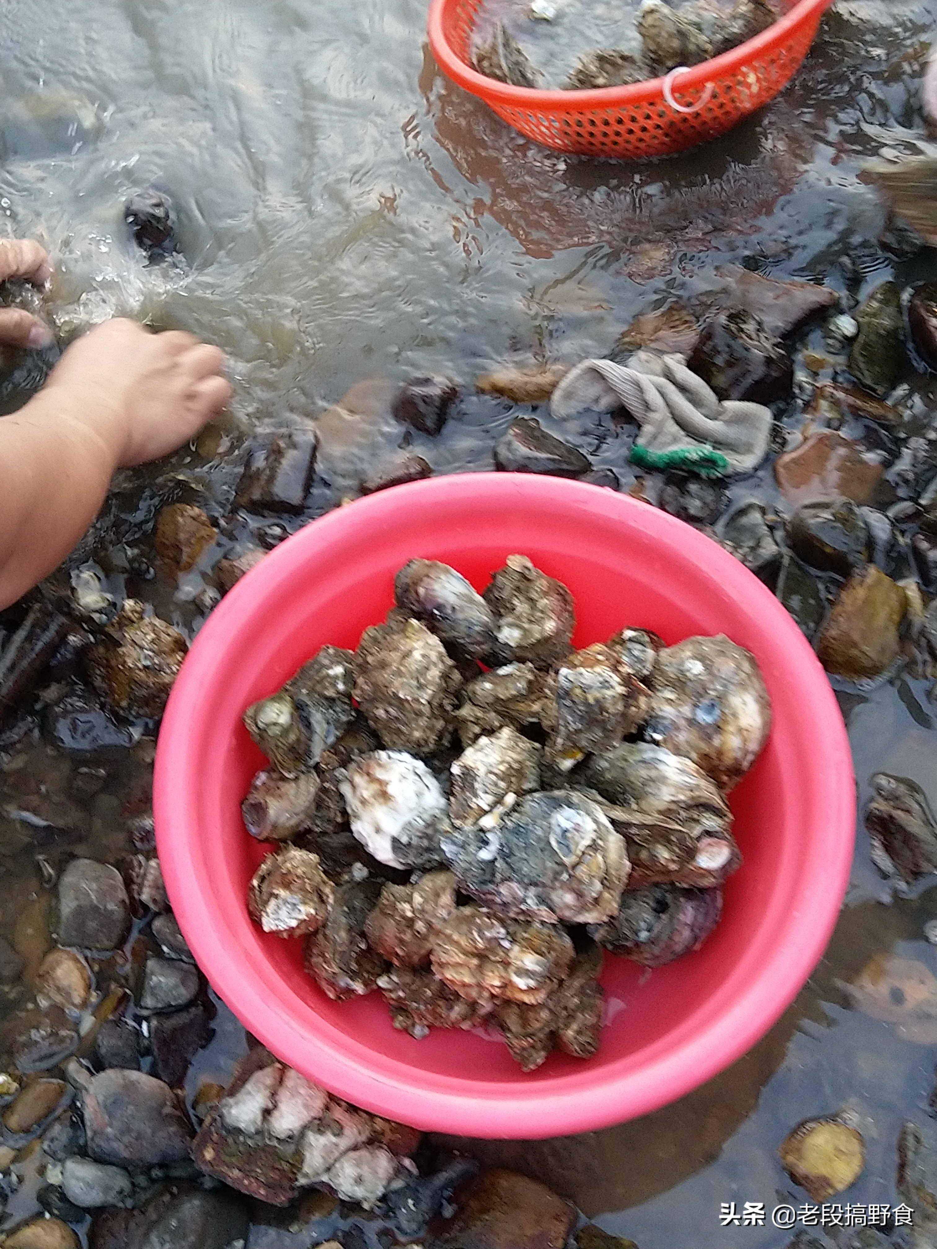 大生蚝,只有退大潮时才能撬到,平时深藏于水底,除非下水去摸,否则很难弄到,一般情况下只能撬到岸边的小蚝。
