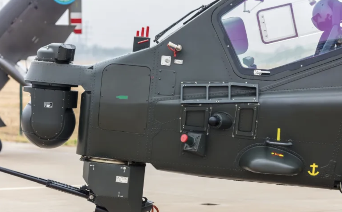 发动机舱的外面,还有一大块深色的平板,这是直-10ME额外加装的防弹装甲,由特种陶瓷和复合材料制成,强度是钢材的几倍,重量却只有钢材的几分之一,非常适合武直使用。发动机是武直的命门,12.7毫米大口径的机枪子弹,都可能打爆武直的发动机。