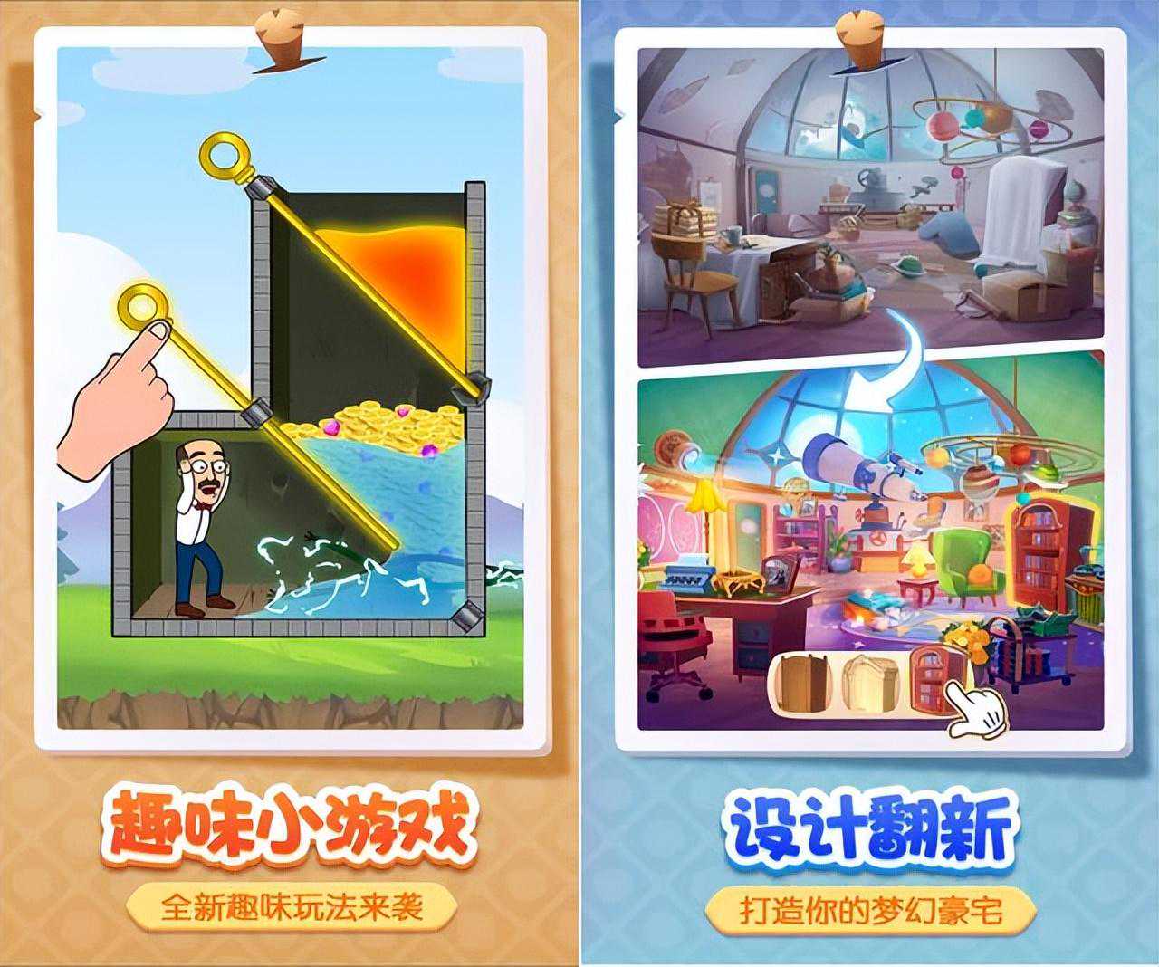 欢迎来到梦幻家园!帮管家奥斯汀为他家美丽的豪宅重拾温暖与舒适。请进!当你踏进门后就是冒险的开始!闯过色彩缤纷的三消关卡以整修和装饰豪宅内的房间、在闯关过程中探索家族故事的更多篇章!你还在等什么?快来装扮家园吧!