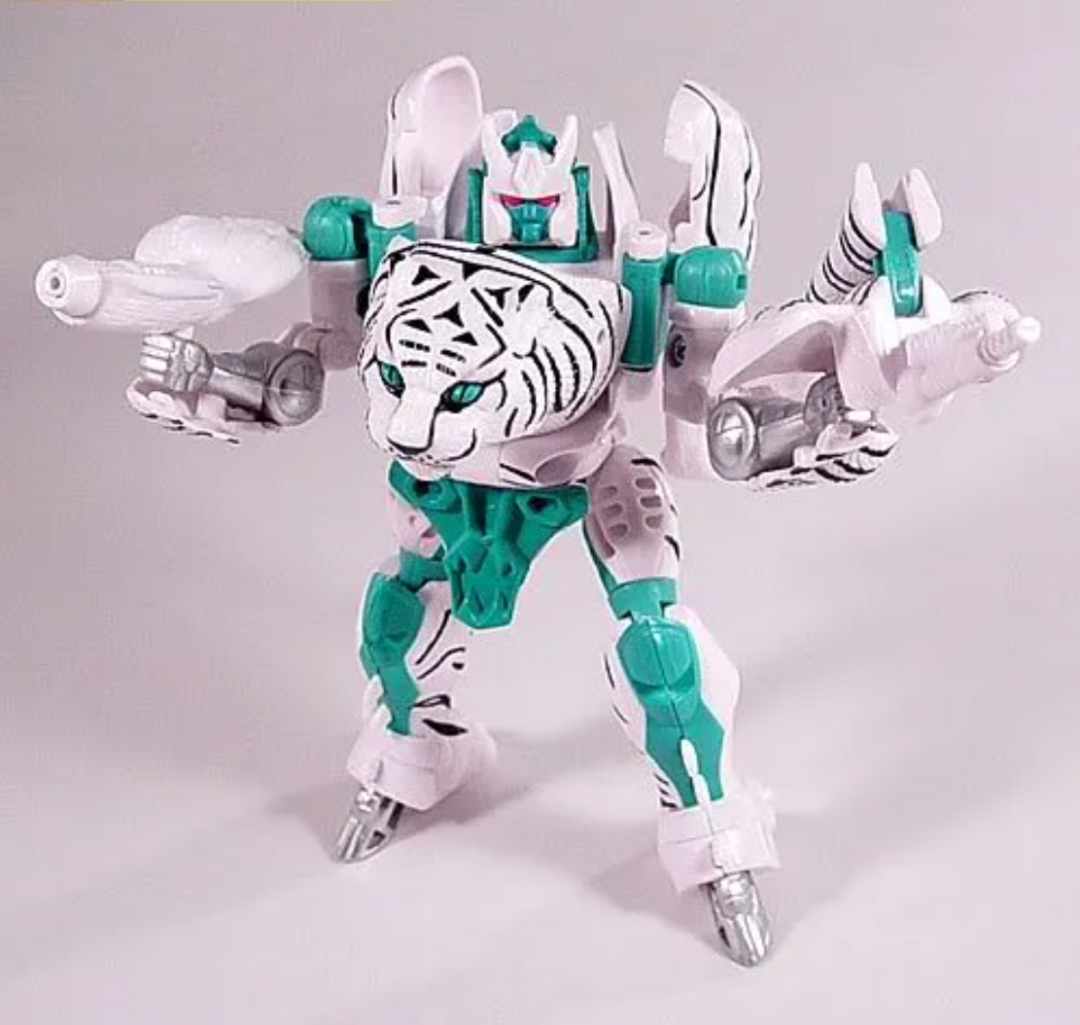 世纪初白虎勇士是世纪初黄豹的重涂,模具和黄豹基本一致,虽然在世纪初玩具中并不是很出彩的模具,然而由于数量稀少,价格要比黄豹高出不少。
