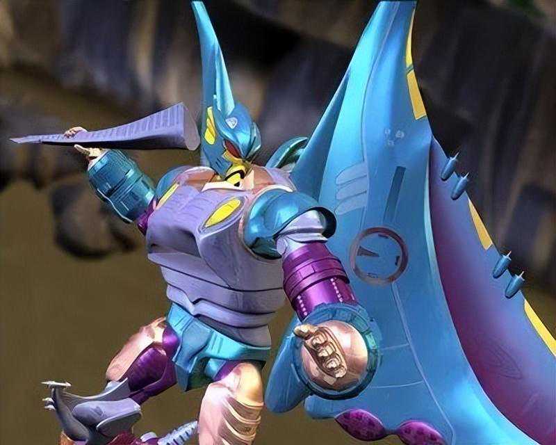 急先锋的武器是一把尾巴变成的剑和一个鲨鱼枪,按动鲨鱼尾部两侧鱼鳍可以弹射子弹。