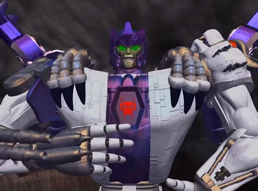 “听我说,巨无霸伙伴们!我知道你们受惊了,但是我能帮你们。……现在听好了:过去,我们仅仅是伪装的机器人,但是在这个星球上,我们巨无霸不再那么单纯,巨无霸程序设定为封锁我们的野兽意识,但是事实证明这是个错误,野兽形态也是我们的一部分,与其禀性抗争只会使它们更强大。我们必须同时接受野兽和机器人形态,感受你们的核心意识,找到程序锁,删除它!将野兽和机器人形态结合起来,让它们和谐共处。使你们变得比以前更强大。”
