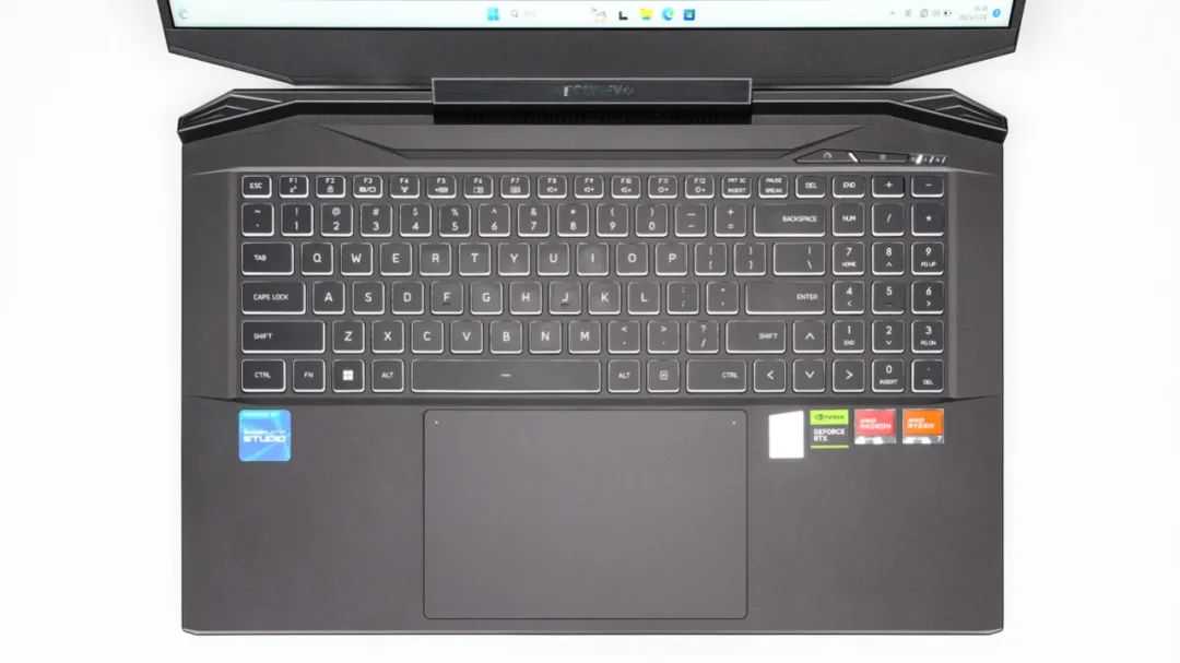 机械革命蛟龙17KS是一台屏幕尺寸很大的游戏本,机身空间充裕所以也用上了全尺寸键盘。