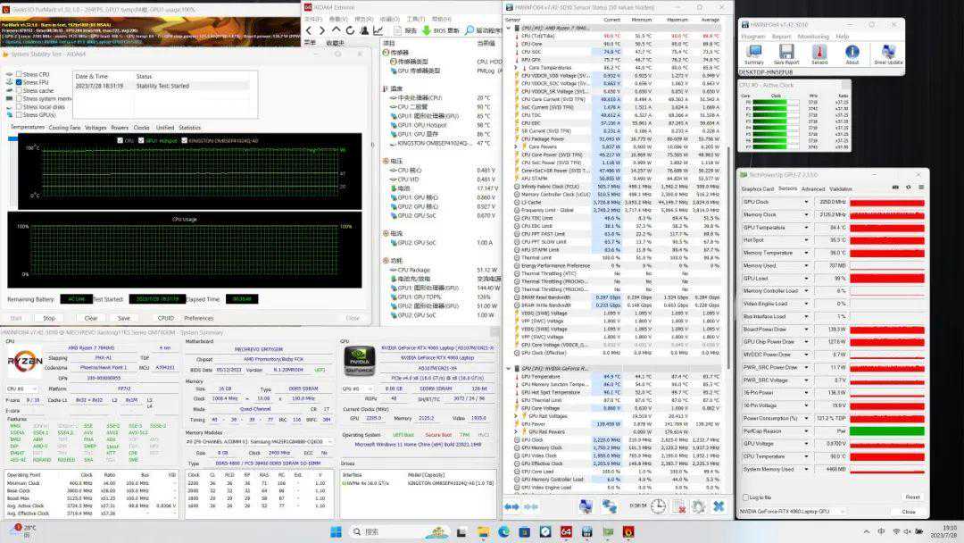 显卡功耗139W,温度84.9℃,频率2250MHz。