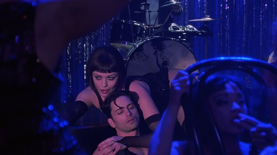 薇玛在舞台上唱的曲子内容,讲的就是一个美女游走在高档的俱乐部,靠自己的美貌成为万众瞩目的交际花,把男人们玩得团团转的,本身就是对两个女主角后续命运的一个隐喻。