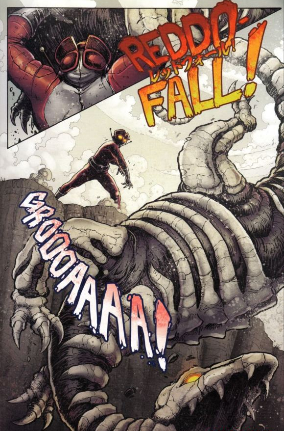 红陨落:红超人使用此招时,会将怪兽高高举过头顶,并用力砸向地面。一般会将对手拖到悬崖边再使用这招,一击必碎。