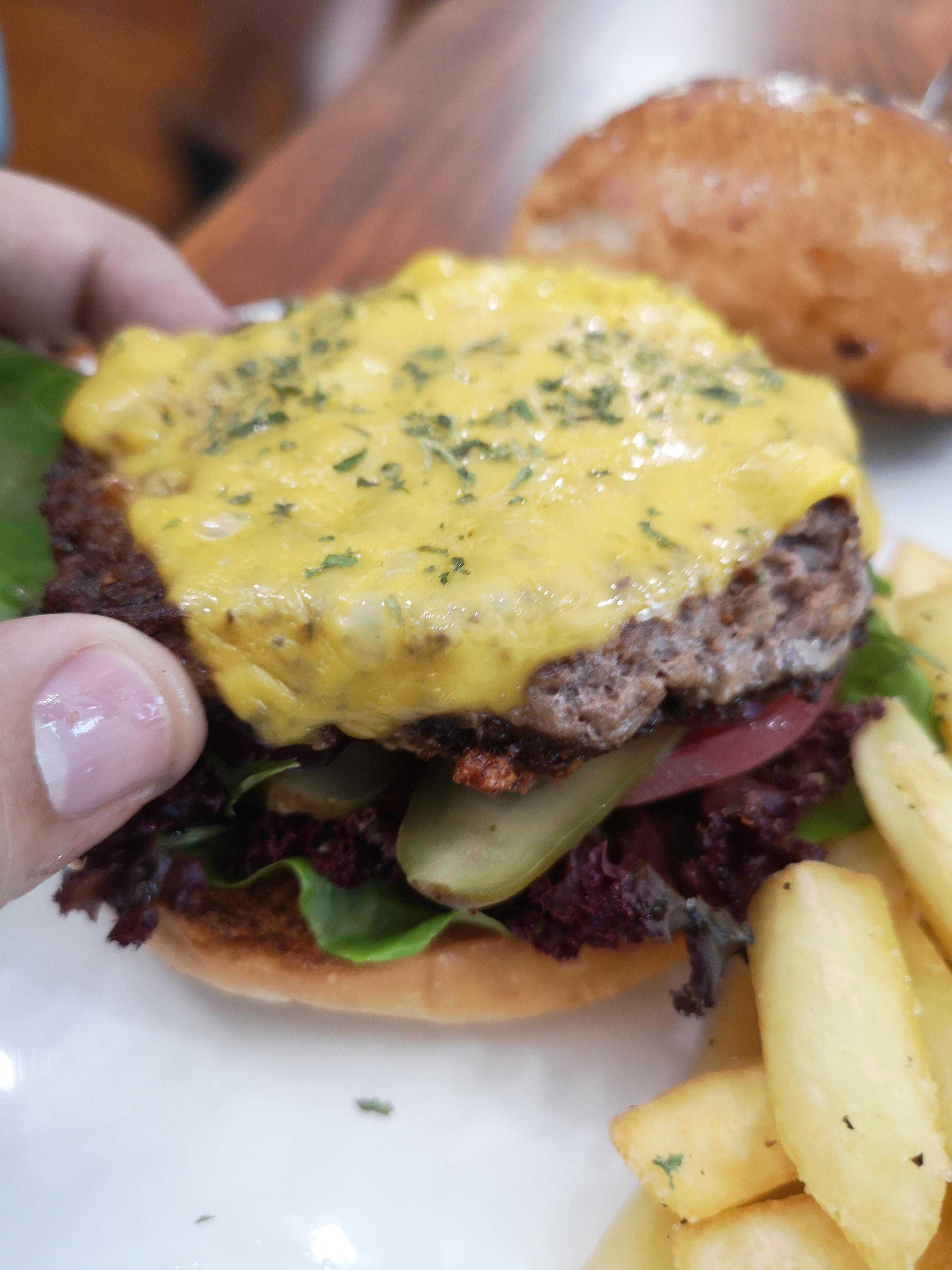 推荐牛肉汉堡,牛肉很厚实,酸黄瓜等配菜也很足。面包胚很酥脆,肉饼香嫩多汁,香而不腻,吃到嘴中饱满而又丰富。咬一口你会感受到肉排中的汁水融入口腔,肉排很软嫩我很喜欢。缺点:我个人很喜欢吃他家汉堡,如果你不耐吃比较软的肉排可能就不适合你。