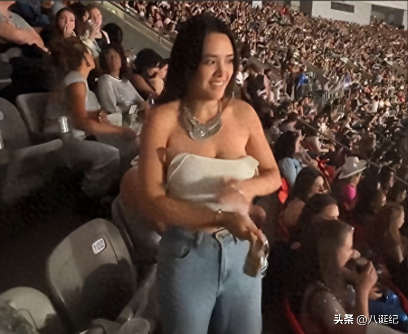 张敏钧本是坐在观众席的普通粉丝,她身穿简单休闲的白色吊带衫和蓝色牛仔裤,与周围歌迷混在一起。