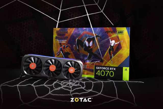 当然,除了蜘蛛侠本身备受瞩目,我们的索泰RTX4070AMPAIROSPIDERMAN显卡除了有独一无二的外观,更有极致强悍的性能,AD104核心在性能释放上已经完胜RTX3080,更别提RTX3070,性能领先更是接近翻倍,并且功耗保持在RTX2070Super的水平!同时它还有RTX实时光线追踪、DLSS3等黑科技加持,搭配蜘蛛侠涂装的它,是多少玩家心心念念的梦中情卡~