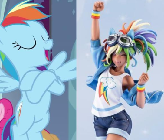 估计也是瞄准了这一部分粉丝,之前官方推出了彩虹小马的拟人娘化企划,而且还推出手办作品,一个个原本就很可爱的小马感觉更可爱了。诸位小马驹的名字翻译各有不同,这里我可能更多是用的我熟悉的名字,还请大家见谅,其实这些名字都行的。