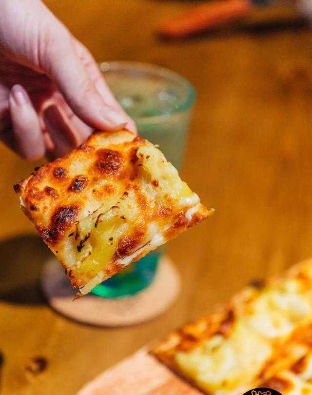 Sfincione(西西里披萨)在意大利语里面有“海绵”之意,口感如海绵般蓬松软糯。加入上等金枕头榴莲肉的四方形西西里纽约片,一上桌浓郁奶香席卷鼻尖。
