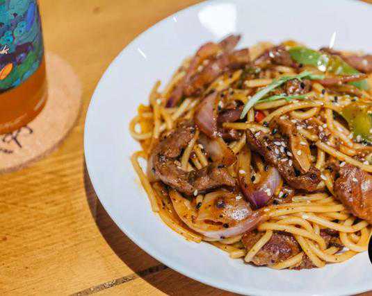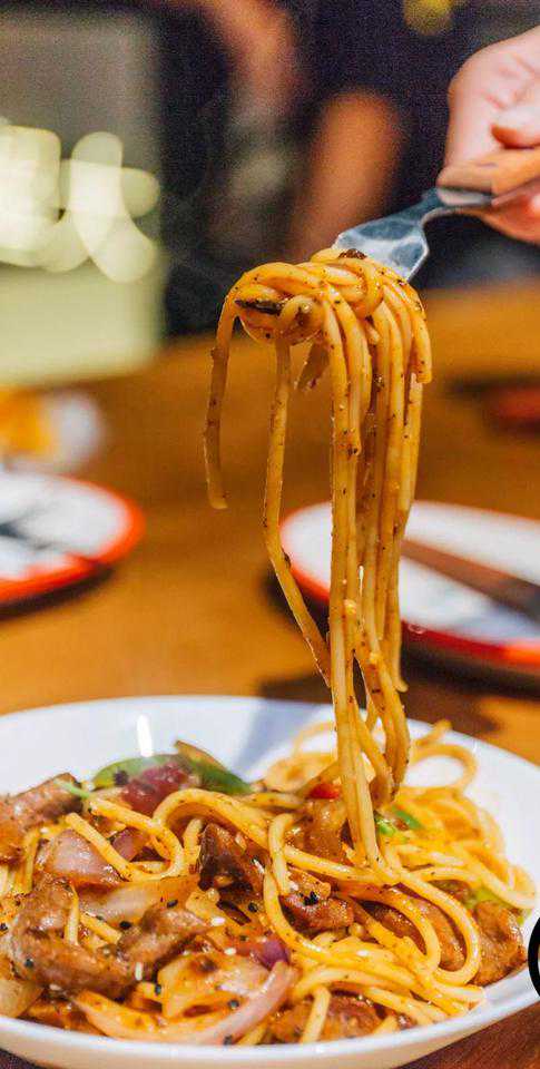 酱色的直管意面包裹着新鲜的牛肉和美好的青椒、洋葱,淋上浓郁的黑椒汁,色泽诱人,口感微辣。牛肉的分量更是肉眼可见的满足~