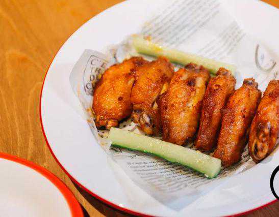 美式辣鸡翅,也叫水牛鸡翅,吃起来果然和普通的炸鸡不一样。甜辣口的滋味非常浓郁,鸡肉多汁软嫩,鸡皮即使被酱汁包裹,也不影响它的脆度,很有韧性。
