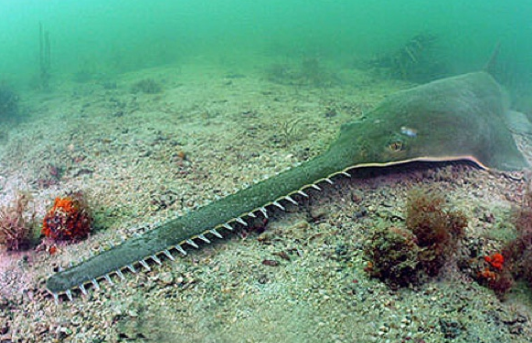 当我们害怕致命杀手鱼的袭击时,我们会想象被咬,吞噬或拖到深处。但是,巨型锯齿鱼能够以完全不同的方式将人类入侵者的肉末减少。巨型锯齿鱼长达7.1米,配有长2.43米长的巨大锯,上面镶有巨大的切割刀片。根据目前的知识,鱼并不是故意猎杀人类,但是视力极差和强大的领土防御能力的结合对人类是致命的。入侵者的处理方式与猎物相同,并且可能被巨大的锯片割断。更糟的是,锯鱼可能一直看不见,直到为时已晚。锯齿鱼种类最多,可能出现在河流和湖泊中,增加了难以想象的恐怖