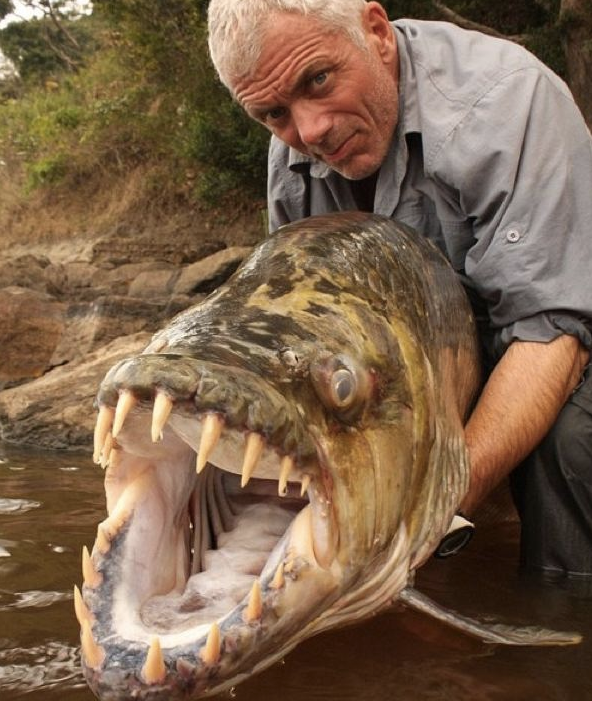 巨人虎鱼是一种如此恐怖的生物,它使令人恐惧的食人鱼看起来像一只宠物金鱼。这些巨型鱼的长度超过1.9米,重达32kg,成群包裹在非洲中部的水道中–在短短几秒钟内粉碎甚至大的猎物。这种黄眼睛的怪物鱼的嘴上长满了匕首般的巨型犬齿,每个犬齿长超过60厘米。在刚果河中发生了许多死亡原因不明的事件,并归因于具有黑暗力量的神秘精神敌人-也就是说,直到极端垂钓者杰里米·韦德从河深处拉出了这些恐怖生物之一。