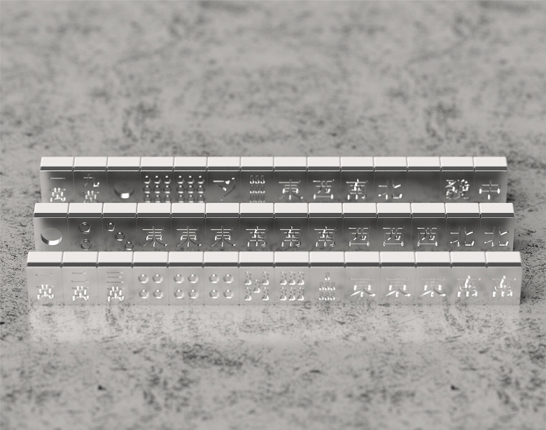 一款类似金属材质的精美麻将设计。韩国设计师Jinkyohan思考麻将作为中国传统牌类娱乐游戏在现代世界的定位。他认为现在麻将的使用具有多样性,除了娱乐之外,有时候还可以作为室内装饰物品,以及作为纪念品送给亲朋好友。自此,设计师大胆创新设计了一款由精致,复杂,多材质,视觉美感,具备使观众感觉平和,安静等多种元素构成的麻将。