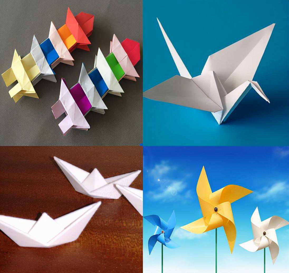 那时简单的一张纸,都翻来覆去一折叠,就变成了各种各样的玩具形状。有的船,塔,风车、飞机,上衣,裤子、扇子、青蛙、千纸鹤、爱心、照相机、狗等等,现在都不会了。