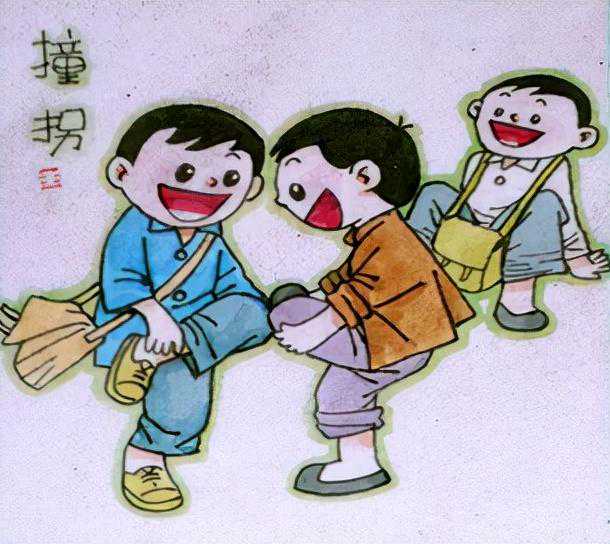 搬起来一条腿,互相撞击,看谁先把对方撞倒。