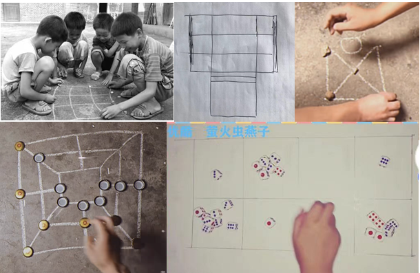那时在地上横竖画几个格子,确定好规矩,就是一种游戏。
