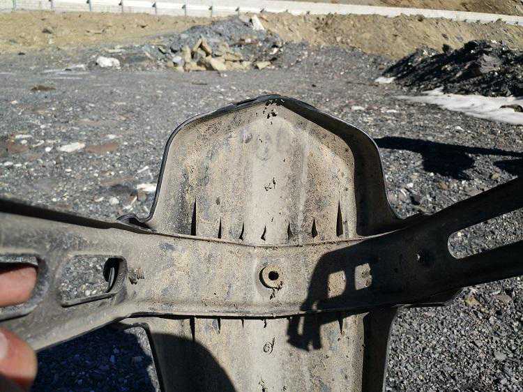挡泥壳左右两点的固定方式容易上下活动,另外再中间加一个螺丝固定就可以解决松动问题,看到孔已经打好了,难道是因为测试车忘记装了?