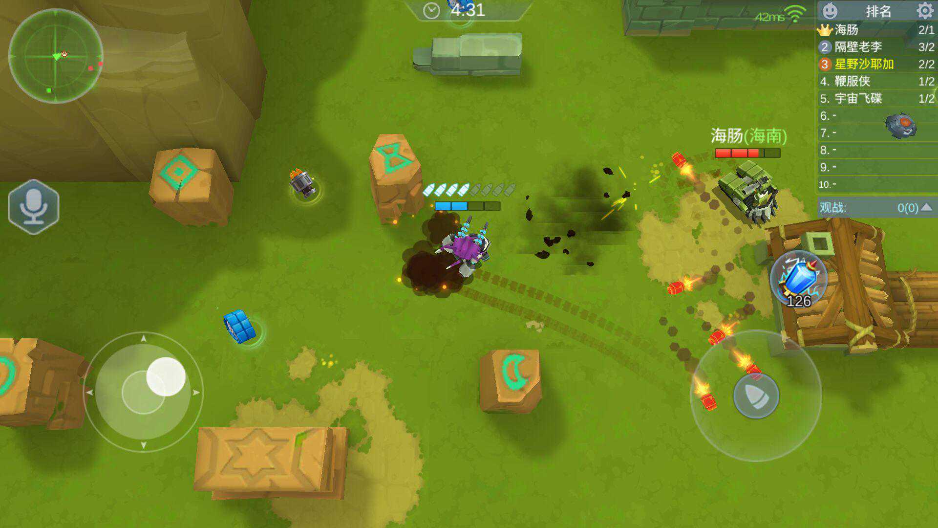 坦克有子弹数限制,会自动恢复,注意残弹量!子弹飞行速度不慢,碰墙会反弹,碰敌人子弹会爆炸,所以基本是考验射击精准度和残弹控制水准。