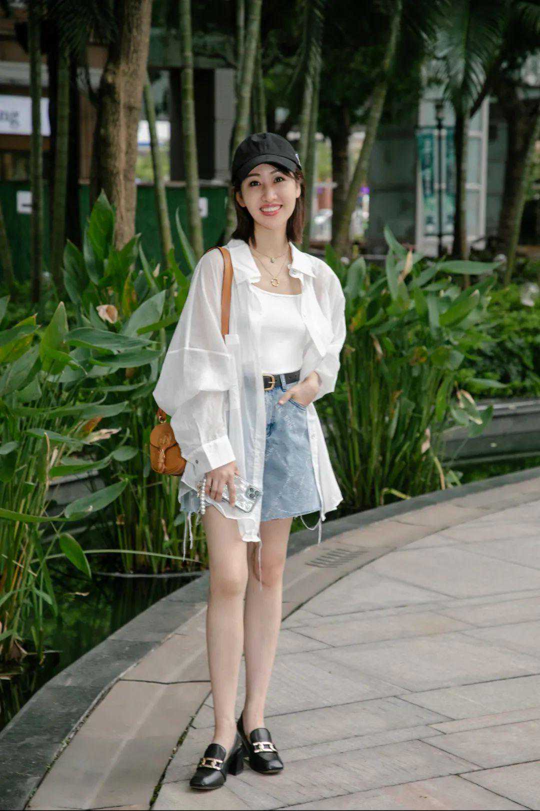 LOOK16:oversize衬衫+背心+牛仔短裤