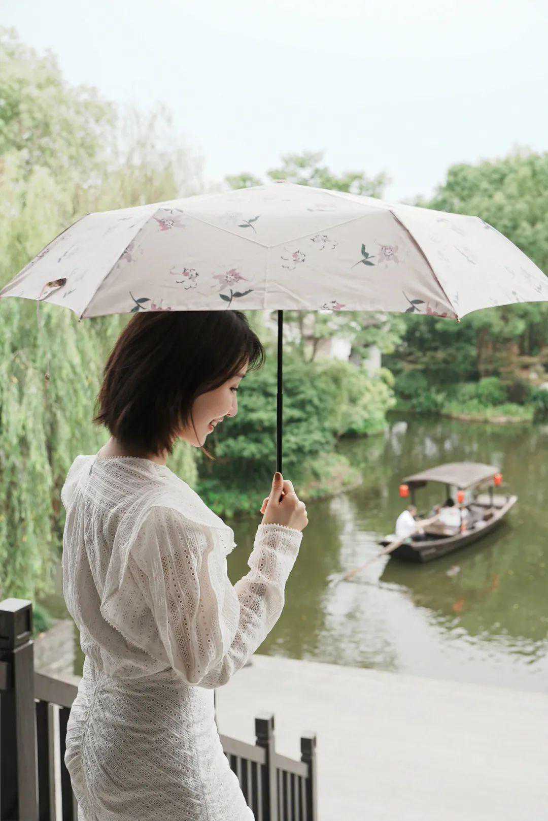 阳伞除了和衣服搭,素净的花色和杭州的诗情画意很配啊~▼