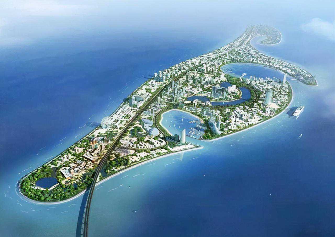 坐落在海口南渡江入海口的海南最大的人工岛——如意岛,计划投资500亿元,填海造陆面积高达612万平方米,直接对标迪拜世界岛,打造休闲娱乐,旅游度假,养老医疗一体化的现代岛屿。