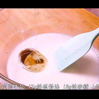 1、碗中放入所有液体材料:45g室温水、2g即溶酵母、45g室温牛奶、17.5g植物油、1个大鸡蛋(室温)、13.7g砂糖