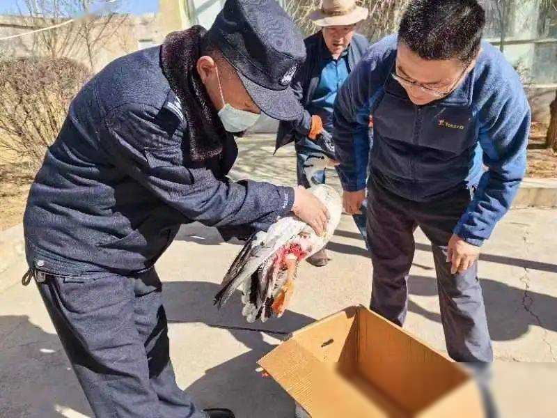 他们小心翼翼地解开网围栏,生怕给斑头雁造成二次伤害。经过一番努力,终于将斑头雁从网上解救下来。此时的斑头雁已经奄奄一息,森警们立即将它抱上警车,送往青海野生动物救护繁育中心。