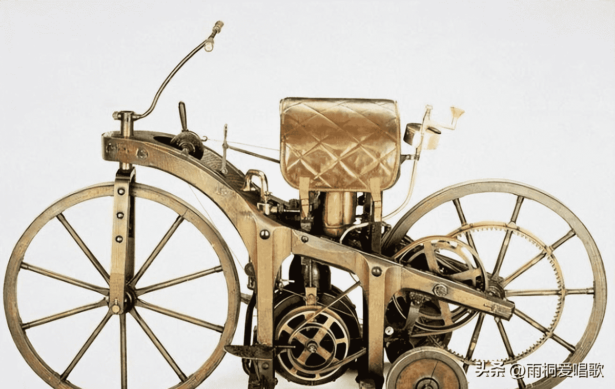 这是世界第一辆摩托车,在1883年由德国戈特利伯·戴姆勒发明,从外形可以看到,已经具有现代摩托的雏形了。