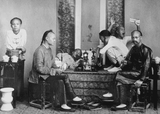 旅美华工在吸食鸦片