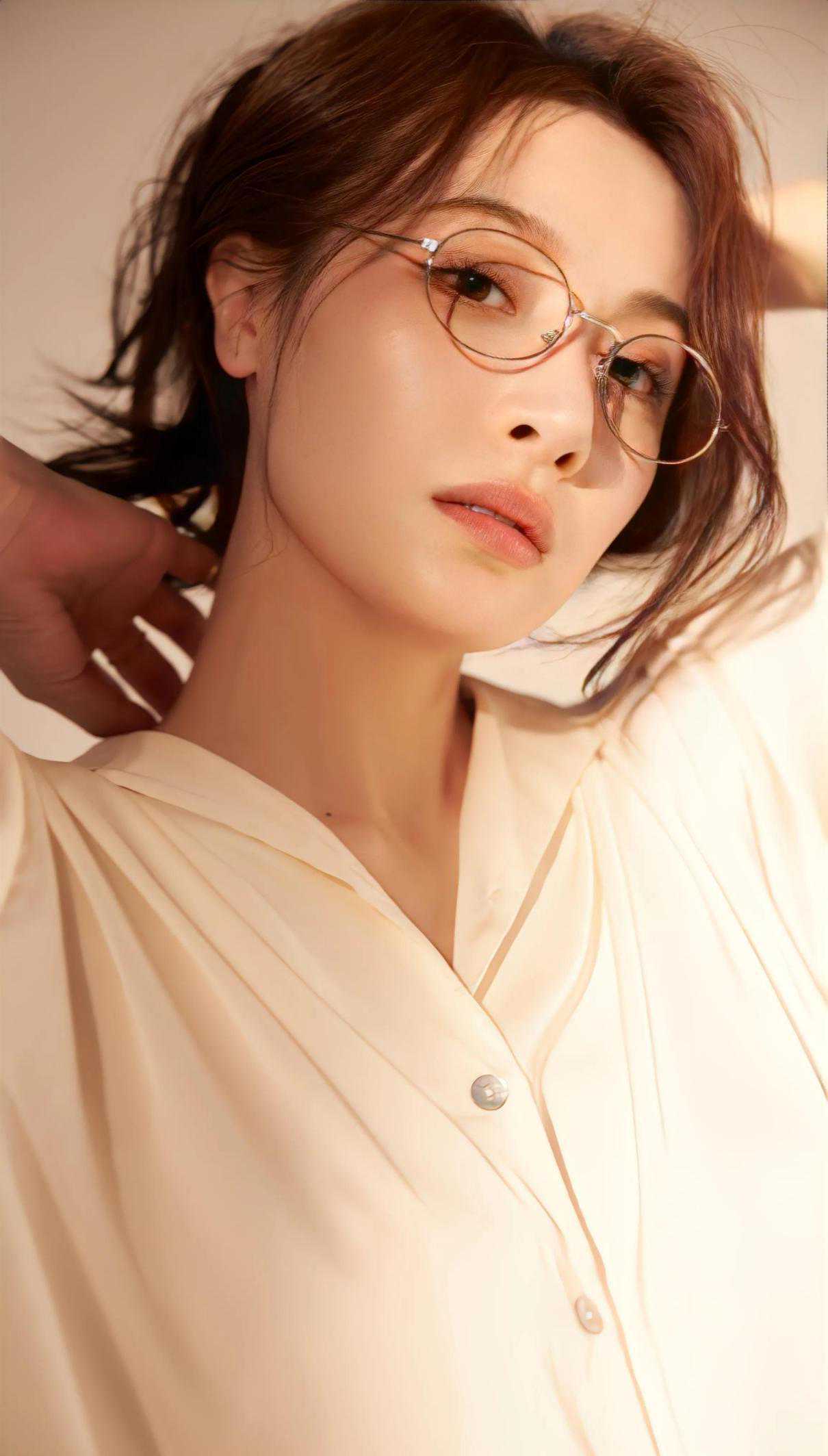 隆妮以一身干练的职业装示人,金丝眼镜下的高冷形象令人印象深刻