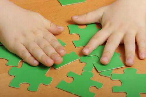 简单的拼图和其他类型的拼图可以。例如,一个孩子在完成拼图时,需要回忆不同棋子的大小、颜色和形状。如果一块不合适,孩子把它放在一边;但是当需要的时候,他就会想起那些他需要的拼图,并放入正确的地方。