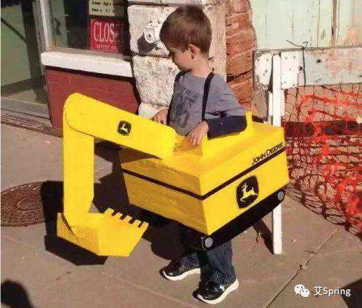 自己用纸箱做一个工程车,创意又有趣。不过这一项比较考验家长的动手能力。去年有个小朋友幼儿园Party的时候穿戴了类似的道具,非常可爱,可惜当时没拍照。