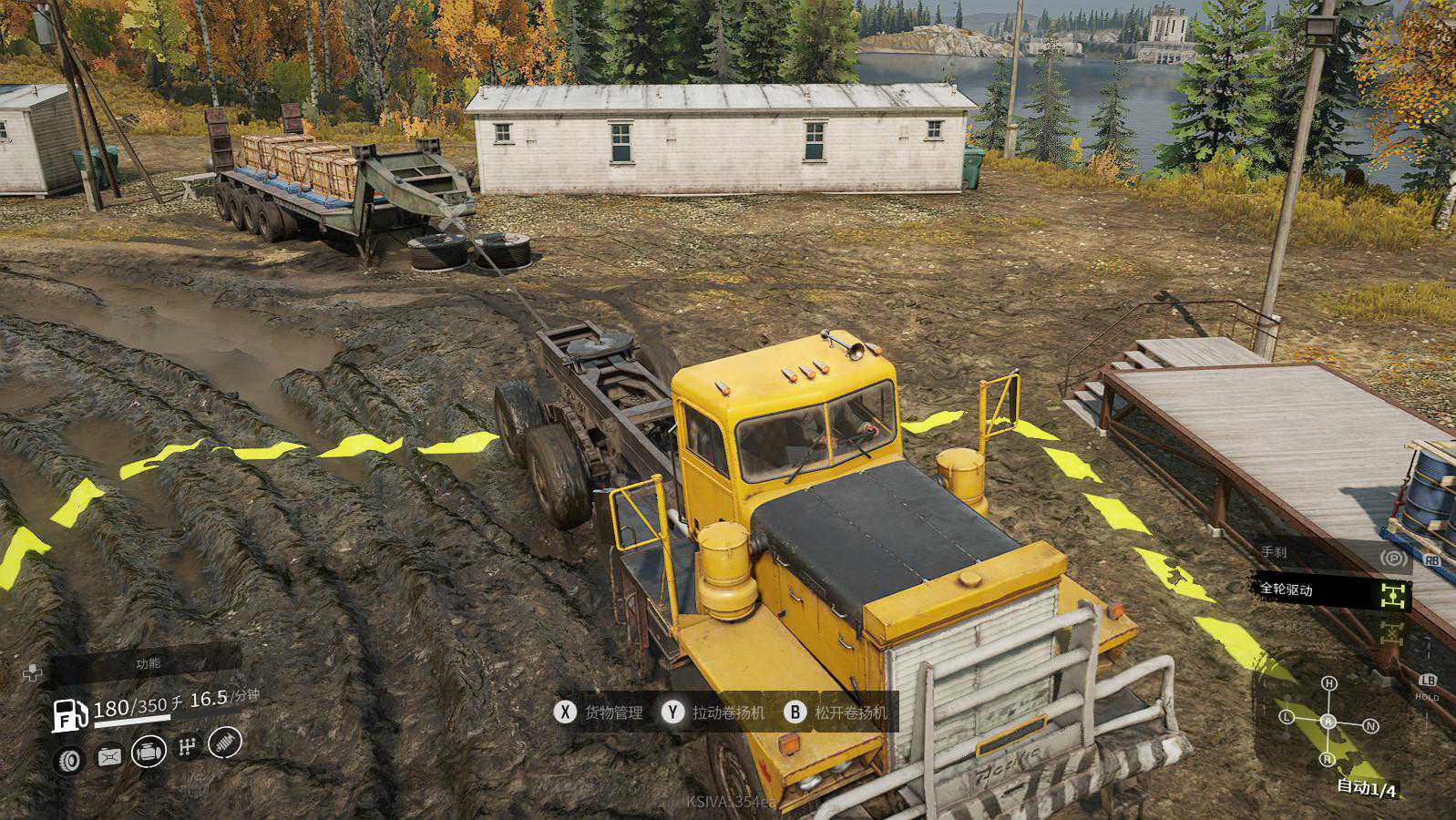 游戏中我们要驾驶的是各种大型越野车辆,去大地图接取运输任务。而我们一路上所要面对的是各种坑洼的路况,有可能是沼泽,草地,雪地,甚至是池塘。而玩家们并不知道这一路上具体会遇到什么,哪里会好走,于是全程必须小心翼翼地驾驶,努力躲开各种陷阱。但是尽管如此陷入泥沼还是不可避免的,这个时候你就要尝试自救了。