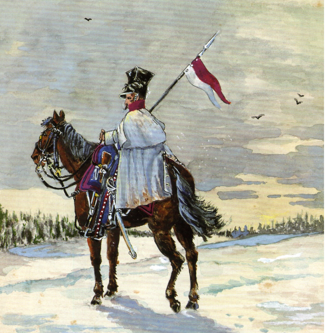 说起这个团,还有一则颇为体现官兵精神风貌的轶事。在波兰枪骑兵打出威名之前,不大了解骑兵也不大懂波兰人的拿破仑曾打算让他们放弃“累赘”的骑枪,认为那些稀奇古怪的东西不过是小孩子的玩具,还不如换成能够在马上开火的枪支。以至于1808年,当拿破仑在巴约讷阅兵时向第1枪骑兵团团长扬·科诺普卡问了一个伤害性不大、侮辱性颇强的问题:“你们(骑枪上)的红白色燕尾小旗难道能够吓到马吗?”