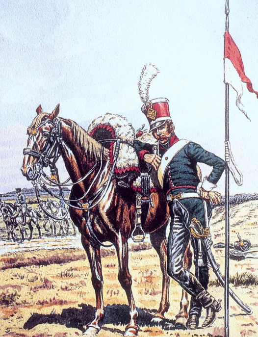 ▲图13.法军第2枪骑兵团上士,注意法国本土枪骑兵团仍然沿用龙骑兵头盔